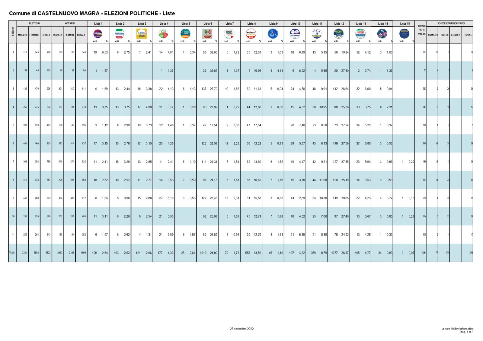 ELEZIONI POLITICHE 25/09/2022 RISULTATI - CAMERA DEI DEPUTATI