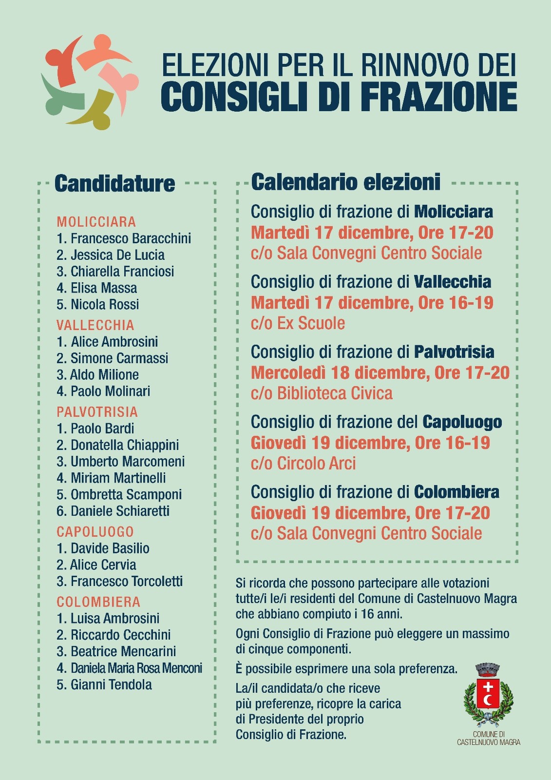 Si informa la cittadinanza che, in data 20 dicembre 2024, la Commissione Elettorale Comunale si è riunita per la proclamazione degli eletti nei Consigli di Frazione del Comune di Castelnuovo Magra.