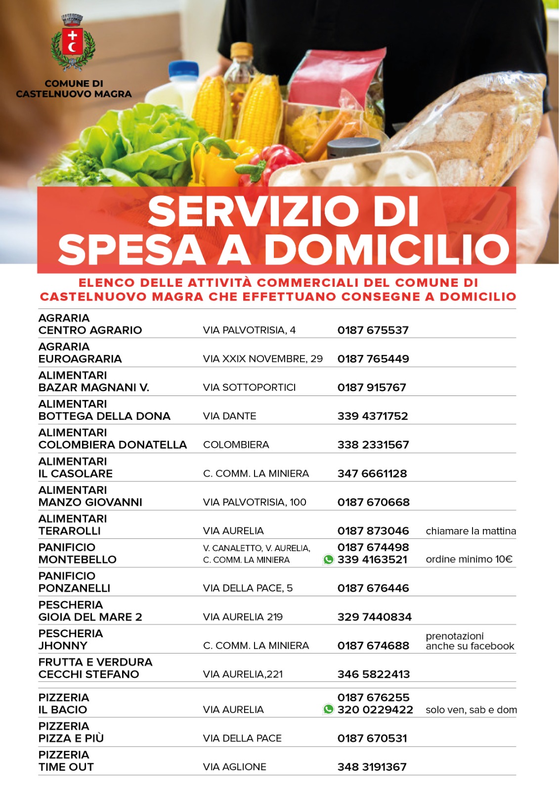 Elenco degli esercizi commerciali che effettuano servizio di consegna domiciliare.